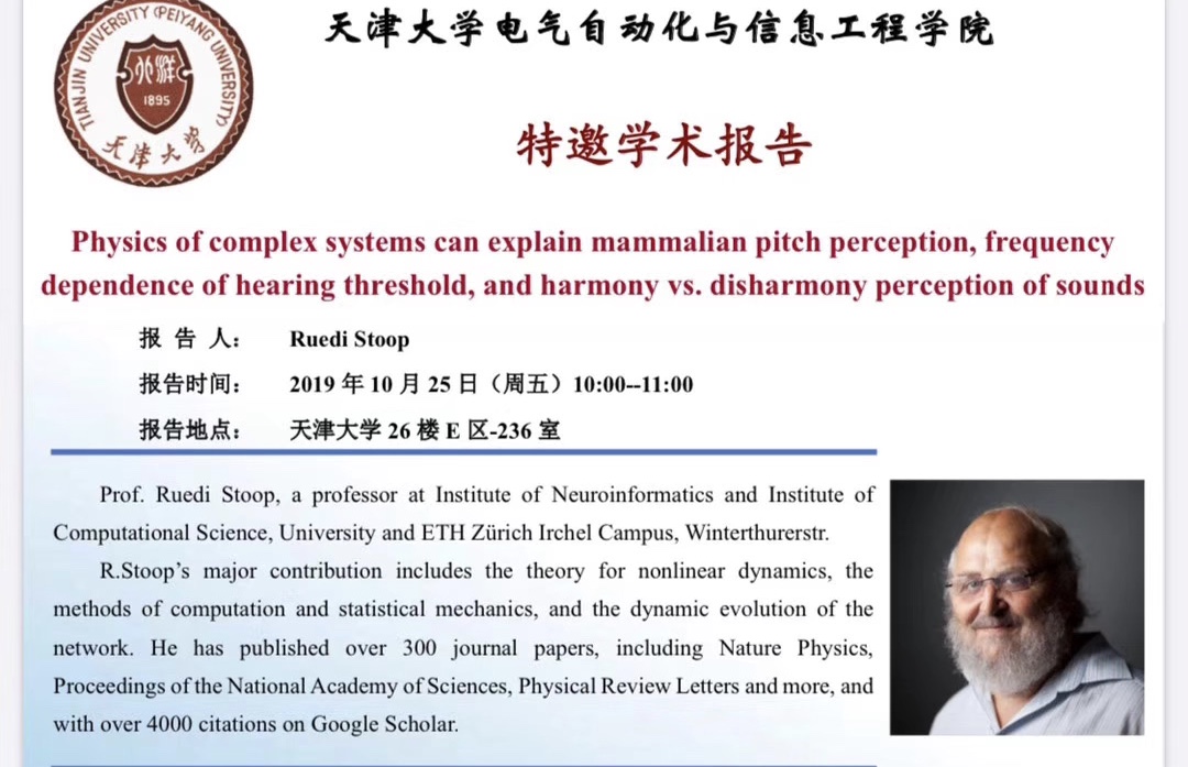Ruedi (Rudolf Robert) Stoop教授,目前为苏黎世大学、苏黎世联邦理工学院和瑞士西北高等专业学院的荣誉退休教授。Stoop教授于1977年在苏黎世大学获得数学学士学位,于1990年获得苏黎世大学、苏黎世联邦理工学院的物理学博士学位。Stoop教授在PRL、Phil. Trans. Roy. Soc.等国际著名期刊上发表了数十篇论文。Stoop教授为诺尔塔期刊编辑委员会会员、约翰内斯堡国际科学计算学院董事会成员、NOLTA IEEE会议外部指导委员会成员、以及NDES会议董事会成员等。