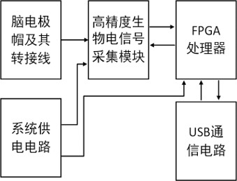 癫痫患者数量众多,发作时间不确定,病症影响严重。预测癫痫发作并做出相应预警可以大幅减轻癫痫对患者造成的身体危害和精神痛苦。为延长癫痫发作的预警时间与预测精度,高忠科教授团队设计了一套搭载高精度EEG脑电采集模块的癫痫发作预警系统。该系统融合复杂网络和深度学习,构建了生理状态分析模块,可评估当前时刻癫痫发作风险,并根据需要提醒患者。经过测试,该系统可以在预测时长为1个小时的情况下,达到96%的预测灵敏度。其中高精度EEG脑电采集模块如图1,癫痫发作预警系统的系统框图如图2。